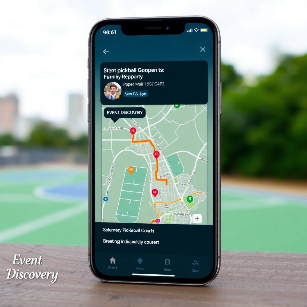Browse available courts, open play sessions, and organized events on an interactive map or list view.